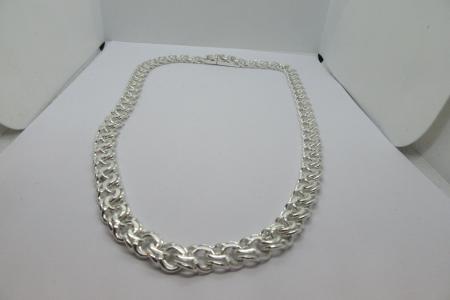 Täiesti uus ja Eestis käsitööna valmistatud Bismarck mustriga hõbekaelakett. Keti pikkuseks on 62 cm-i ja laiuseks 11,5 mm; kõrgus 4,1 mm. Ketil on korralik karplukk ja turvaaas. Kett kannab proovi 925 ja peal ka meistrimärk ja meie Firmamärk TL, keti kaaluks 118,79 grammi. Ketti saab EELNEVAL KOKKULEPPEL näha ja osta meie kontoris Sõle 19, E-R 10-18 ja L-P kokkuleppel. Turuhind 590-690 eurot, Meie Uus Soodsam hind 450.- eurot.