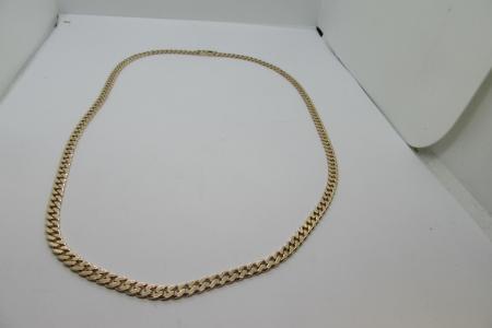 Täiesti uus Eestis käsitööna valmistatud Pantser mustriga kuldkett täislüliga. Kuldketi pikkuseks on 53 cm; laiuseks 4,7 mm, kõrguseks 1,7 mm, täislüliga käsitööna valmistatud pantser kuldkett, mis on kandilise lihviga servadega, mida nimetatakse ka Soomes "Ojalan malliks", meil on pakkuda ka kumeras servaga pantserit. Kuldkett kannab proovi 585 ja peal ka meistrimärk ning meie Firmamärk TL, kaaluks 31,32 grammi. Kuldketti saab EELNEVAL KOKKULEPPEL näha ja osta meie kontoris Sõle 19, E-R 10-18 ja L-P kokkuleppel. Turuhind 3250-3600, Meie hind 2796.-Eurot!