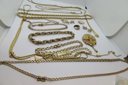 Pakkuda siis valik erinevaid 585 prooviga kuldehteid peaaegu ainult materjalihinnaga. Ehete hulgas siis: 8 kaelaketti; 5 käeketti; 1-rinnaehe; 2-ripatsit ja üks rist; 1 sõrmus väikeste briljantidega; 2-paari kõrvarõngaid. Kõik ehted kannavad proovi 585 ja enamikel peal ka meistrimärgid-kvaliteedimärgid, või aastamärgid jne. Ehted sobivad soovi korral sulatamiseks, sest müüakse peeaegu ainult materjalihinnaga, või siis edasimüümiseks, osaliselt kandmiseks ja osaliselt sulatamiseks vastavalt siis Ostja soovile. Ehteid antud valikust ERALDI EI MÜÜ, ehted kaaluvad kokku 91,93 grammi. Kuldehteid on võimalik EELNEVAL KOKKULEPPEL võimalik näha ja osta meie kontoris Sõle 19, E-R 10-18 ja L-P kokkuleppel. Turuhind ehetena 6100-6400 eurot, Meie hind 5790.-Eurot.