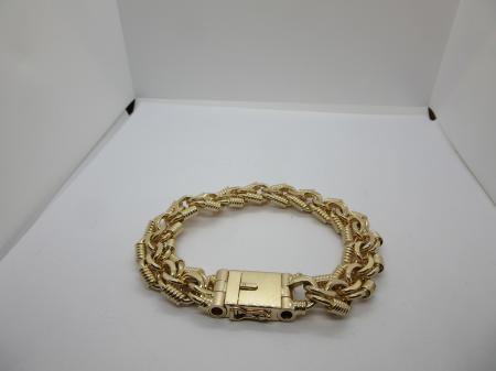 Täiesti uus ja Eestis Ainulaadne kuldkäeketi mudel. Kuldkäeketi keskmine osa meenutab Bismarcki- ja Kobra mustrit. Servades on iga lüli kaunistatud keermega, mis on kõik ühe kaupa käsitööna paigaldatud(ei ole valatud koos lüliga). Kuldkäeketil eriline toruhingedega lukk, mis tähendab, et lukk liigub keti suhtes 90 kraadi ja näeb väga efektne välja. Kuldketi kaaluks 104,63 grammi; pikkuseks on 23,6 cm ja laiuseks 15,5 mm ning kõrguseks 6,5 mm; korralik massiivne karplukk ja turvaaas. Kuldkäeketti saab EELNEVAL KOKKULEPPEL näha ja osta meie kontotis Sõle 19, E-R 10-18 ja L-P Kokkuleppel. Turuhind PUUDUB, sest sellist ketti pole Eestis varem tehtud, aga eritellimusel valmistades maksumus 9600-10200 eurot, Meie hind 9080.-Eurot.