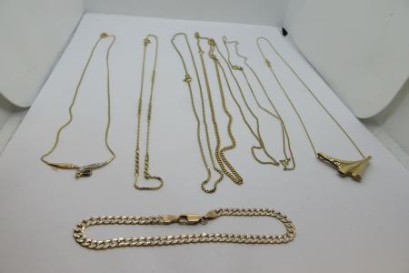 Pakkuda siis valik erinevaid 585 prooviga kuldkette peaaegu ainult materjalihinnaga. Kokku 8 erinevat kuldketti, millest 7 kaelaketti ja üks käekett. Kõik ehted kannavad proovi 585 ja enamikel peal ka meistrimärgid-kvaliteedimärgid, või aastamärgid jne. Ehted sobivad soovi korral sulatamiseks, sest müüakse peeaegu ainult materjalihinnaga, või siis edasimüümiseks, osaliselt kandmiseks ja osaliselt sulatamiseks vastavalt siis Ostja soovile. Ehteid antud valikust eraldi ei müü, kuldketid kaaluvad kokku 24,44 grammi. Kuldehteid on võimalik EELNEVAL KOKKULEPPEL võimalik näha ja osta meie kontoris Sõle 19, E-R 10-18 ja L-P kokkuleppel. Turuhind ehetena 1990-2200 eurot, Meie hind 1759.-Eurot.